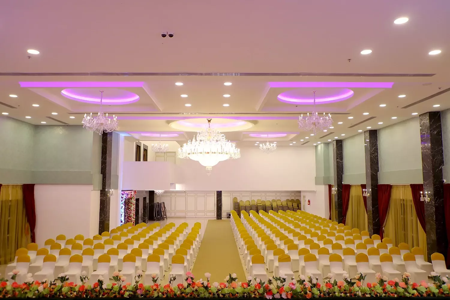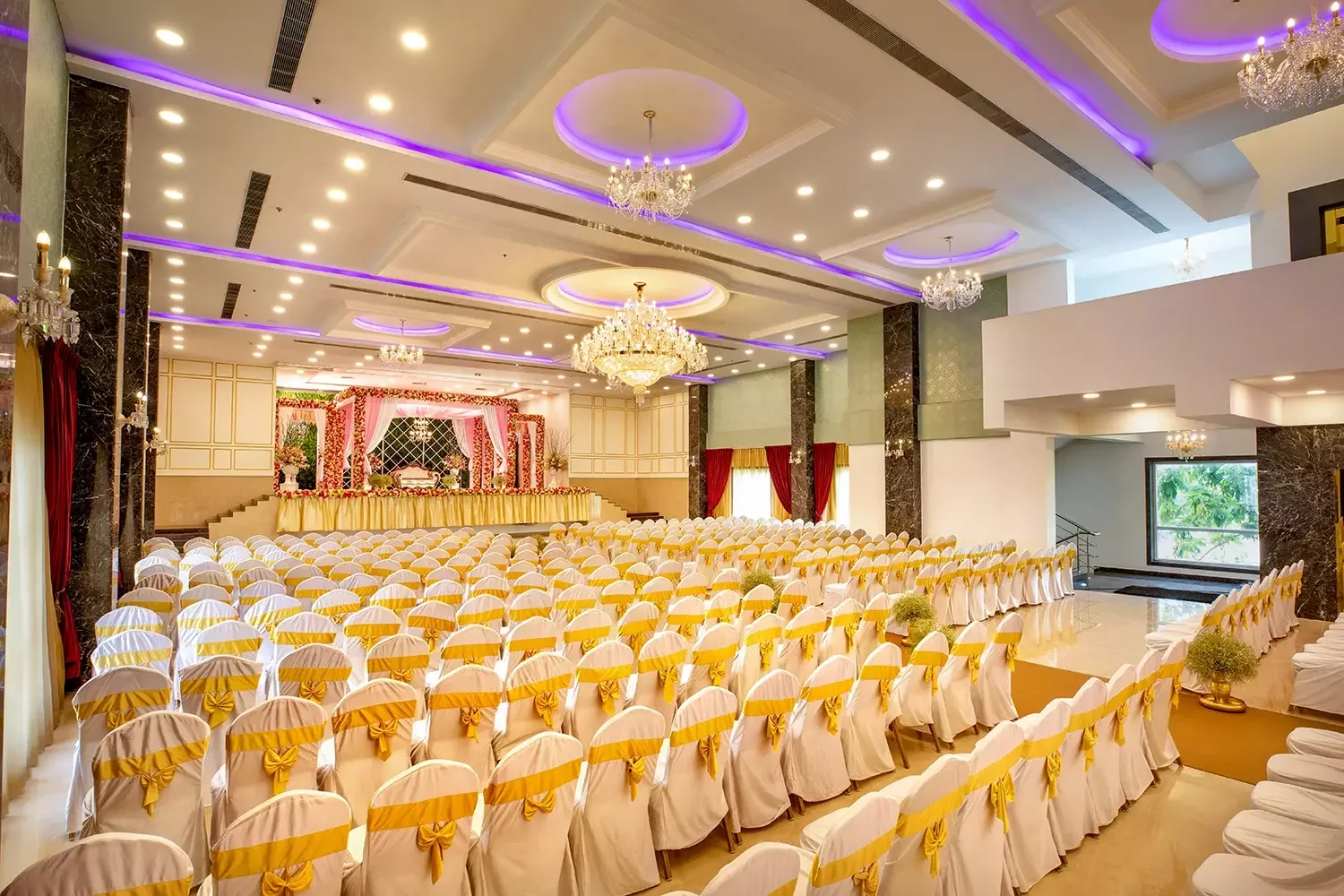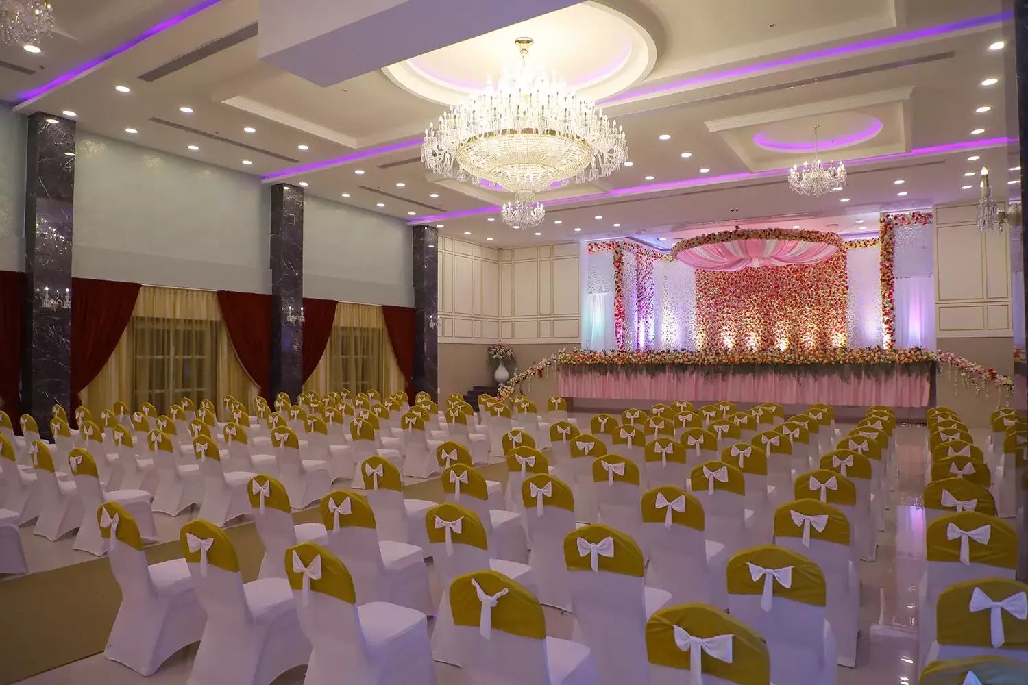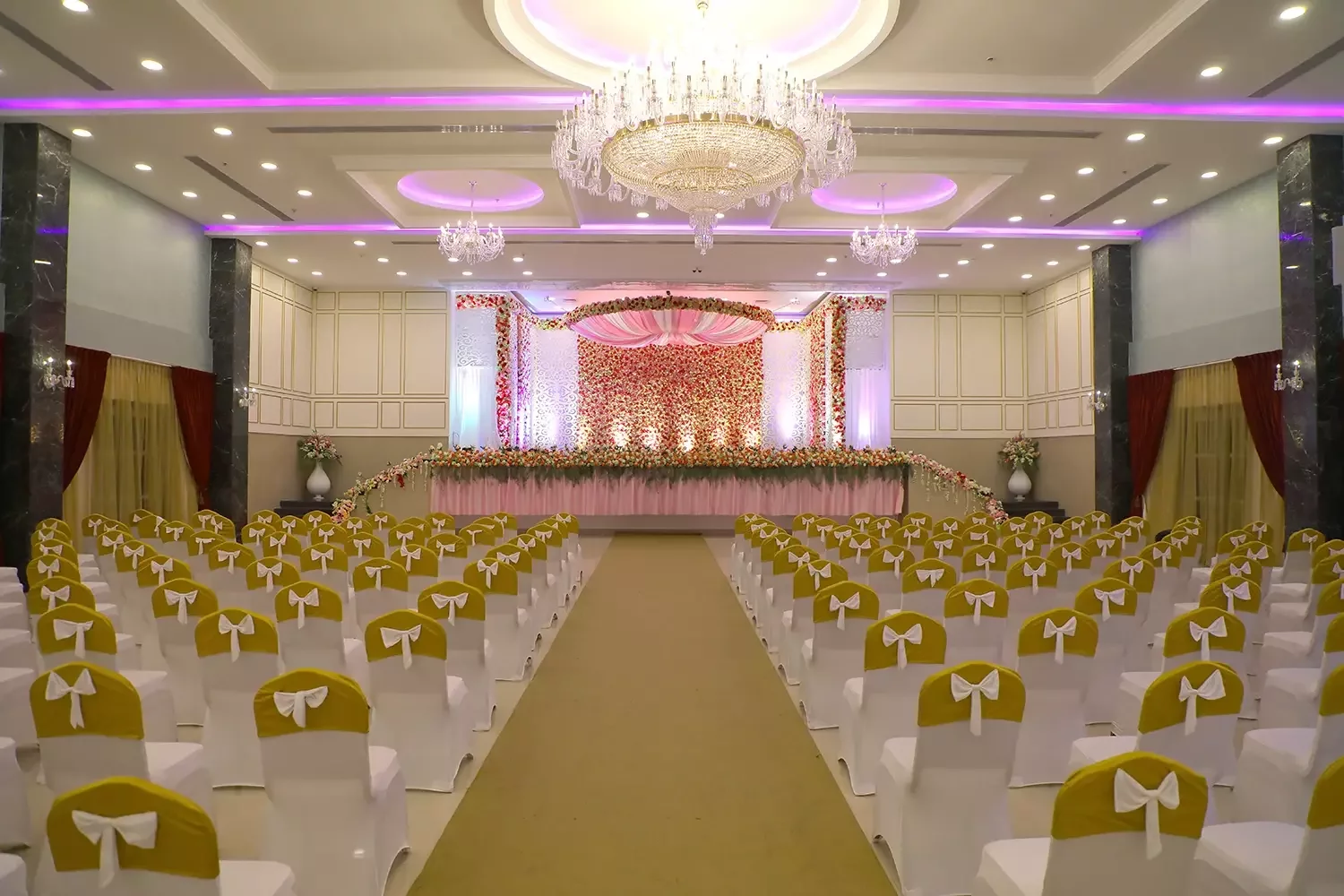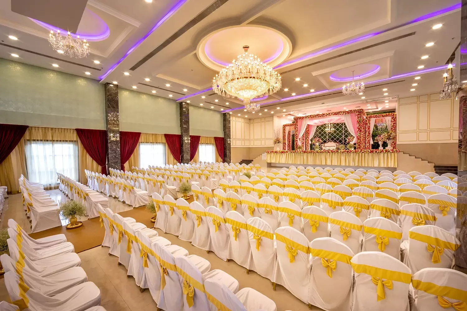 Our latest and largest hall is a sight to behold! From crystal-studded chandeliers to custom mood lighting The Ballroom at Risa was created to make all your wedding dreams come true. The spacious interiors and rich detailing take celebrations to new royal heights. The design elements were created to provide a luxurious experience, all while ensuring that practicalities and modern sensibilities were paramount.