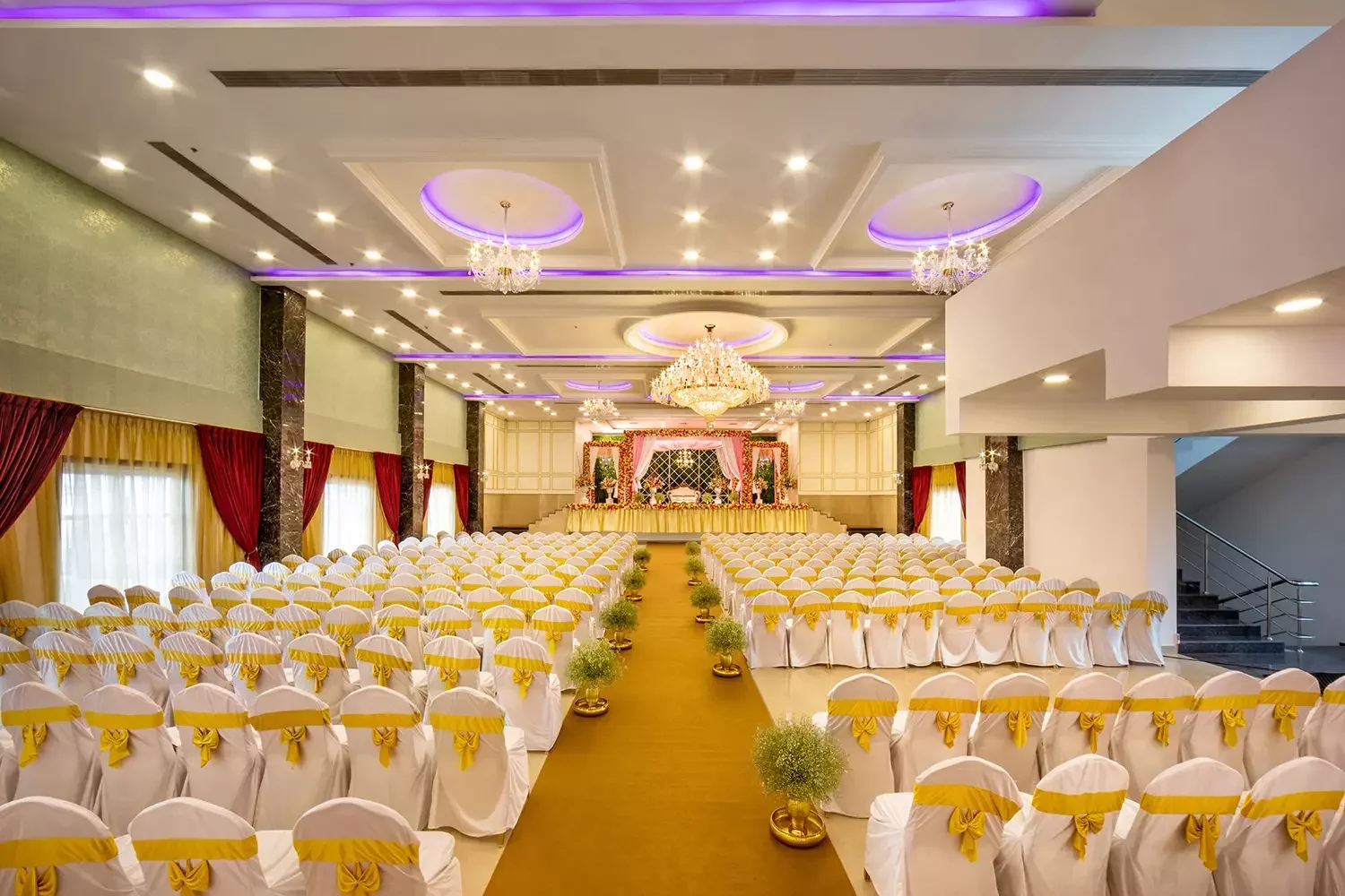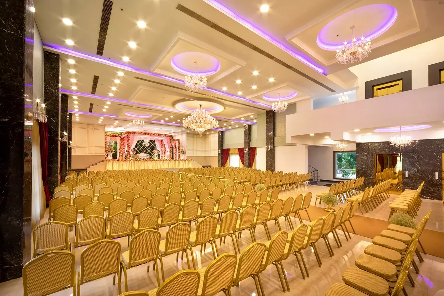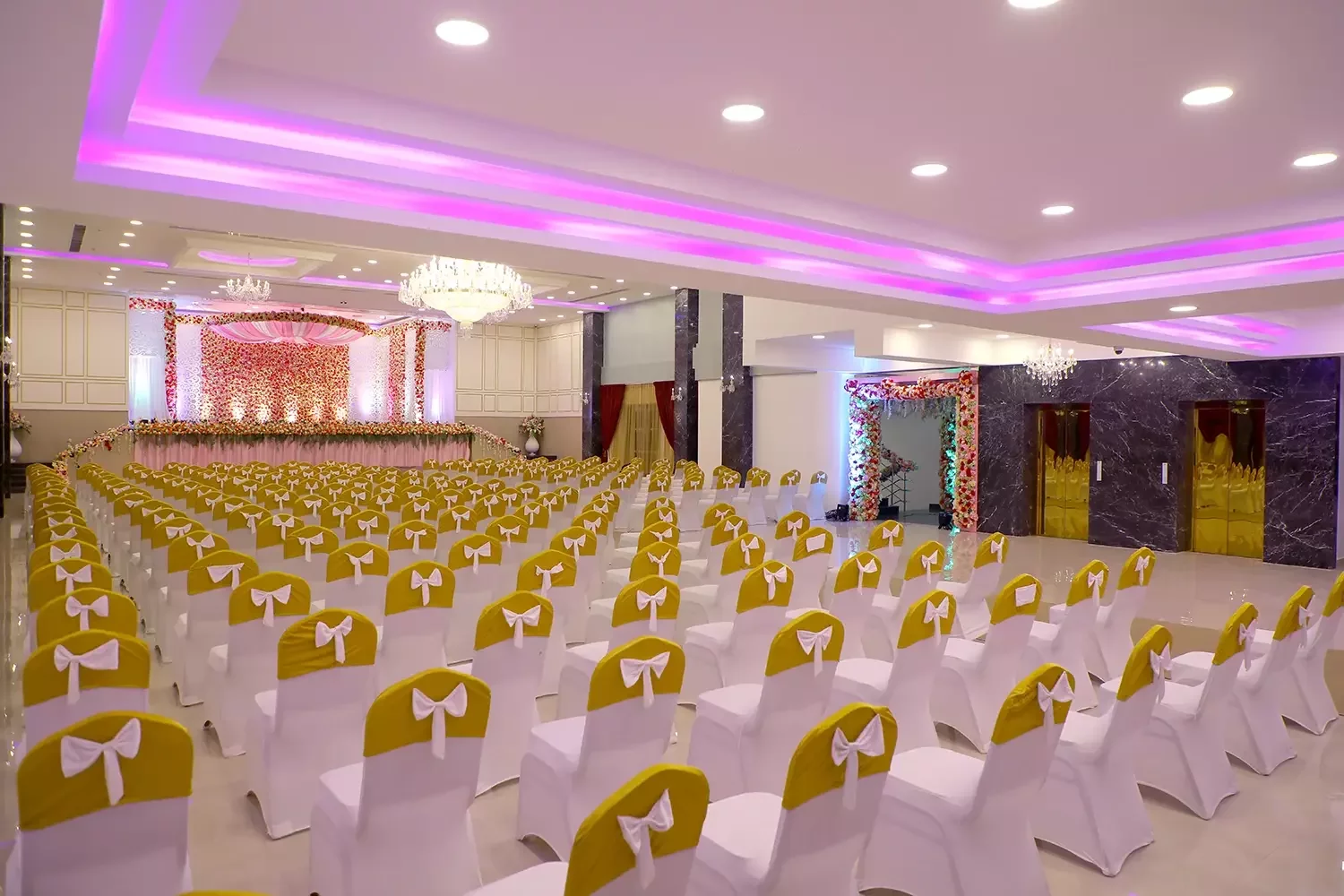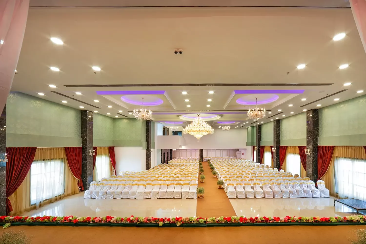 Our latest and largest hall is a sight to behold! From crystal-studded chandeliers to custom mood lighting The Ballroom at Risa was created to make all your wedding dreams come true. The spacious interiors and rich detailing take celebrations to new royal heights. The design elements were created to provide a luxurious experience, all while ensuring that practicalities and modern sensibilities were paramount.